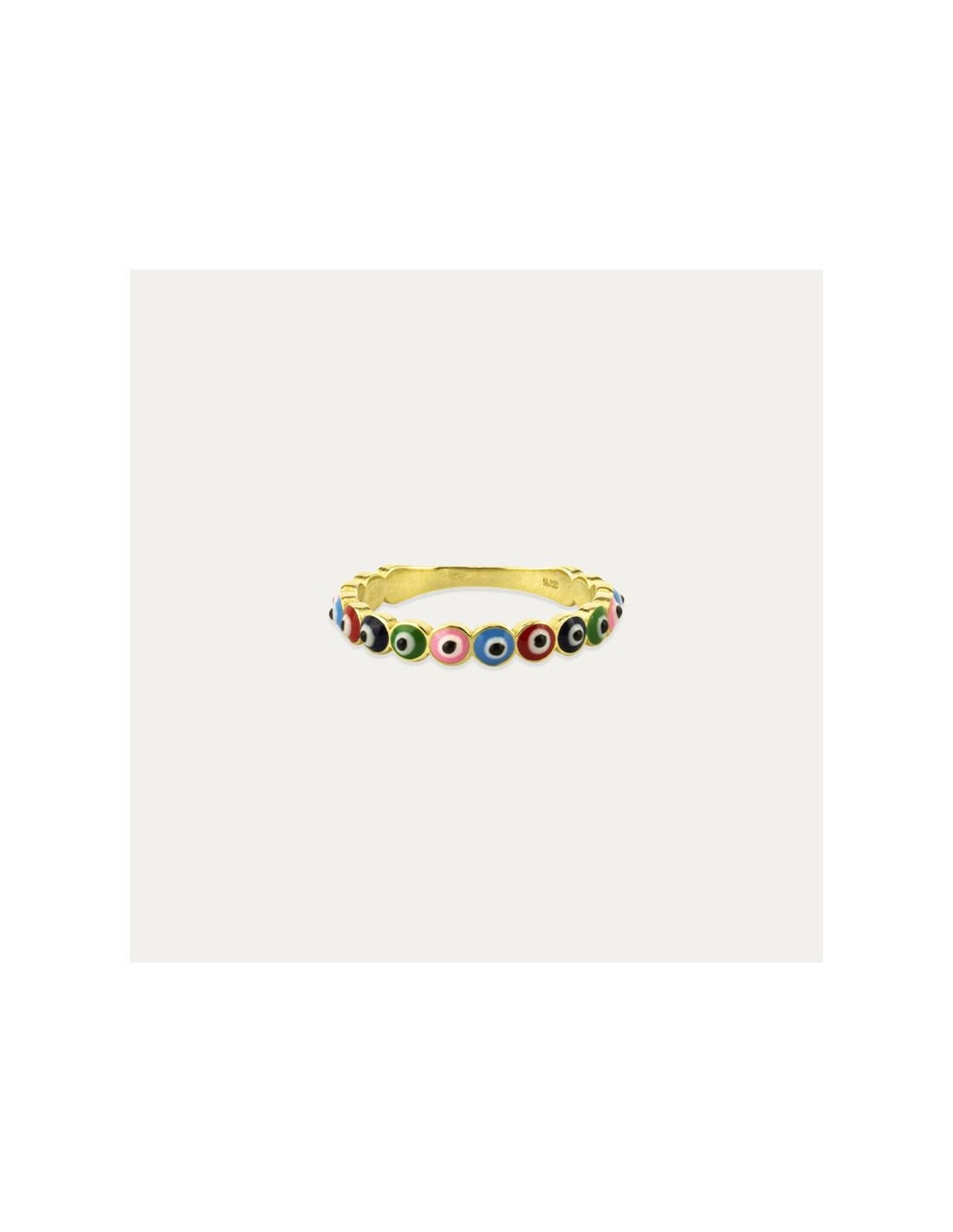 Anillo de Oro 9 quilates. Formado por varios ojos de Nazar en diferentes colores. Una sortija especial para la Colección Nazar, perfecta para combinar con gran cantidad de joyas diferentes.