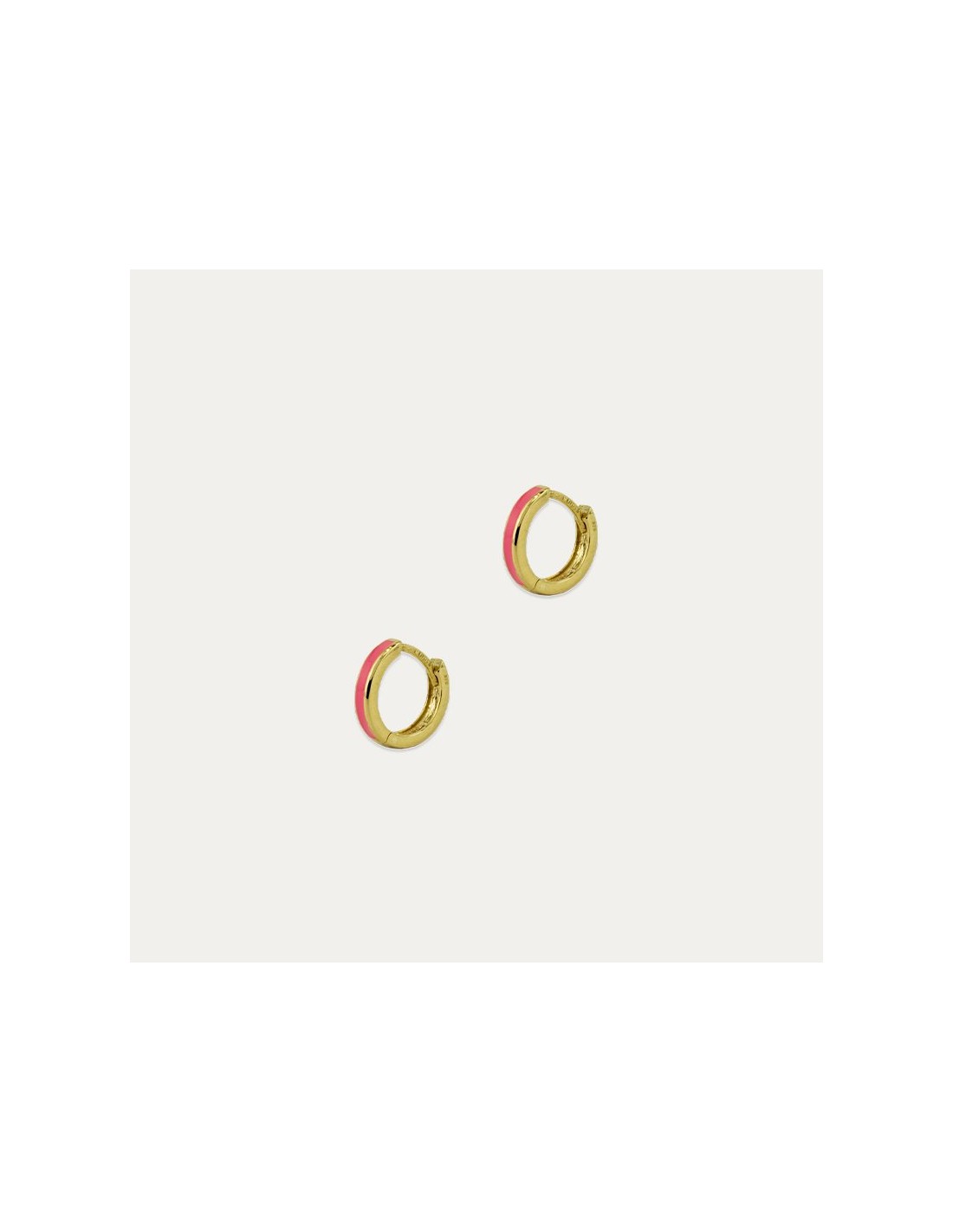 Pendientes de aro en Oro 9K. Aros divertidos con esmalte de color rosa. Combínalo con tus pendientes o piercings de colores favoritos. ¡Te encantarán!