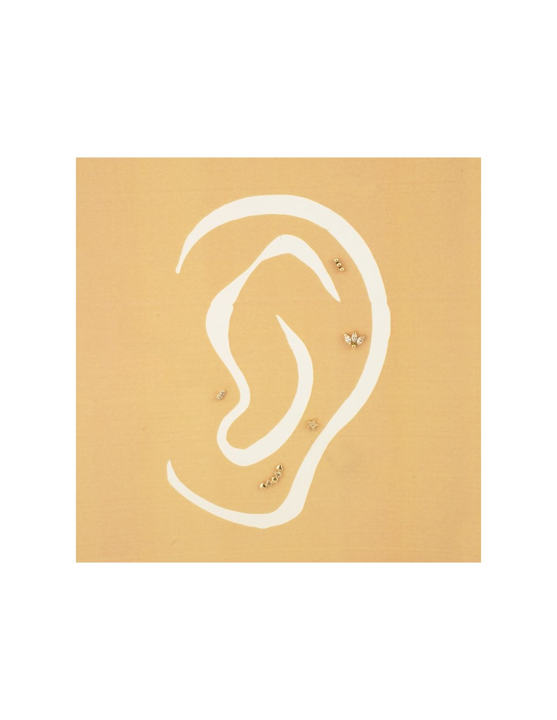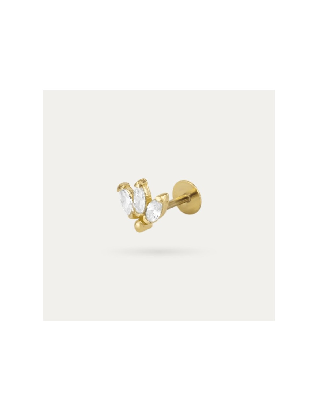 Piercing en Oro de 9 quilates. Formado por tres pequeñas hojas con circonitas en su interior. Un pendiente muy especial que será de tus favoritos.