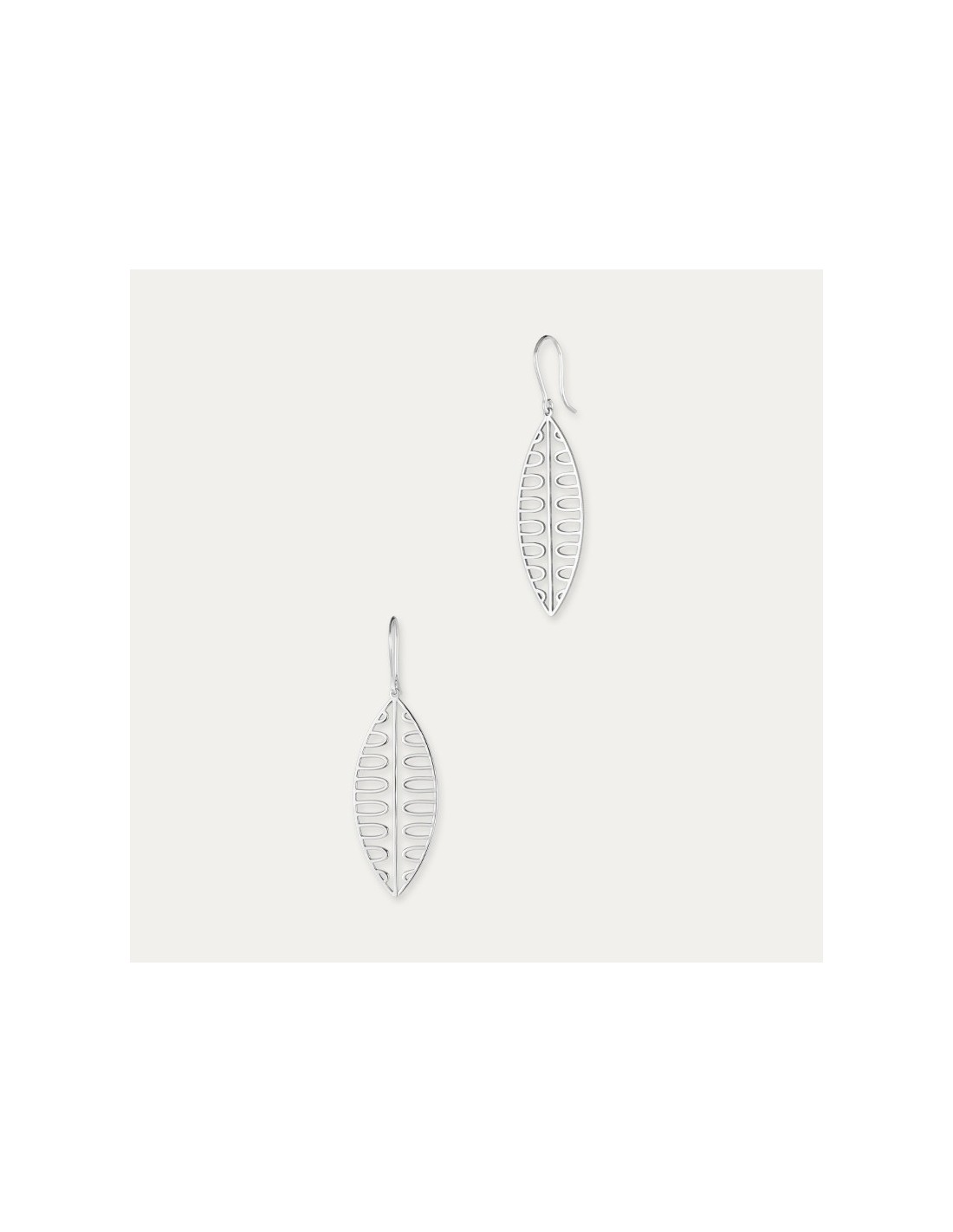 Par de pendientes de colgar fabricados en Plata de Primera Ley con motivo de silueta de hoja.