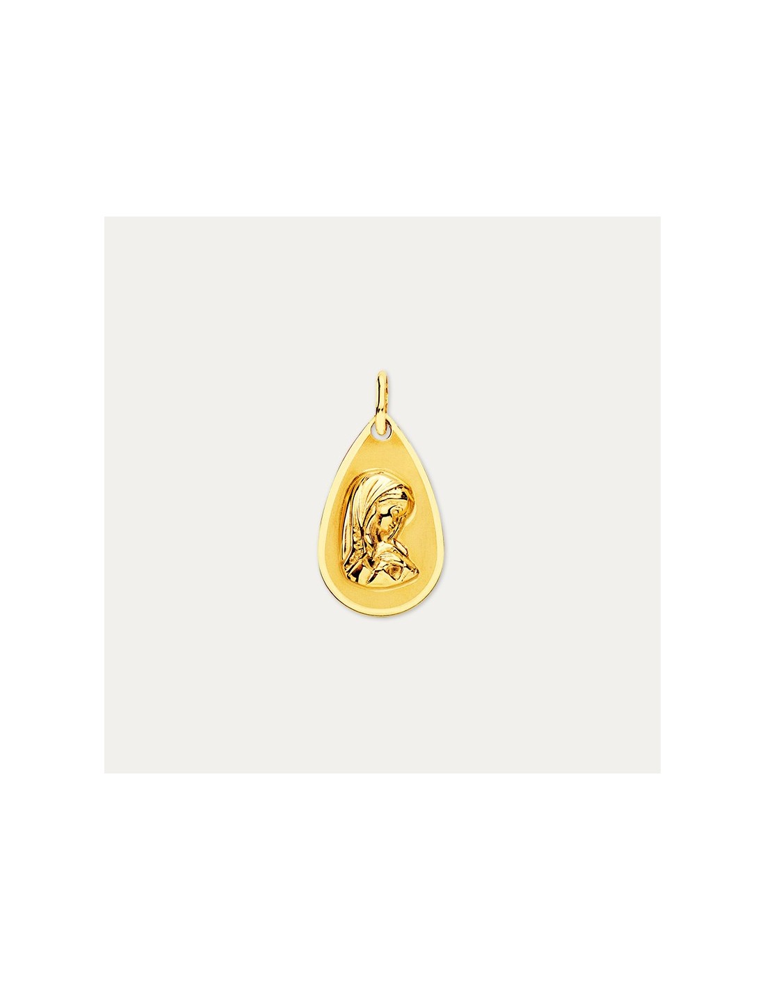 Medalla infantil en Oro amarillo 9 quilates con la imagen de la Virgen en relieve y bordes calados.