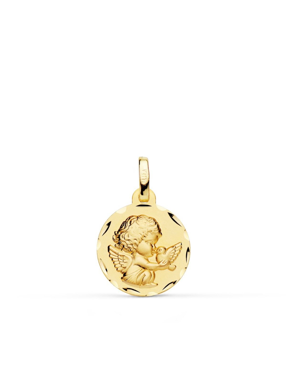 Medalla infantil en Oro amarillo 9 quilates con un ángel en relieve y con forma circular.