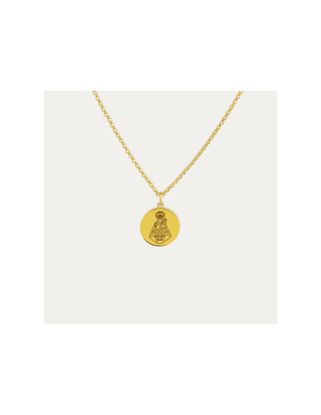 Medalla en plata dorada con la Virgen de Covadonga. Es una pieza para cualquier ocasión.
