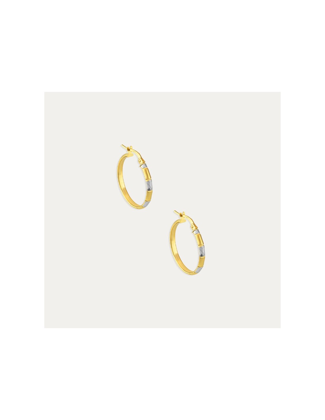 Pendientes de aro elaborados en oro bicolor de 18 quilates. Su elegancia hará que llames la atención.