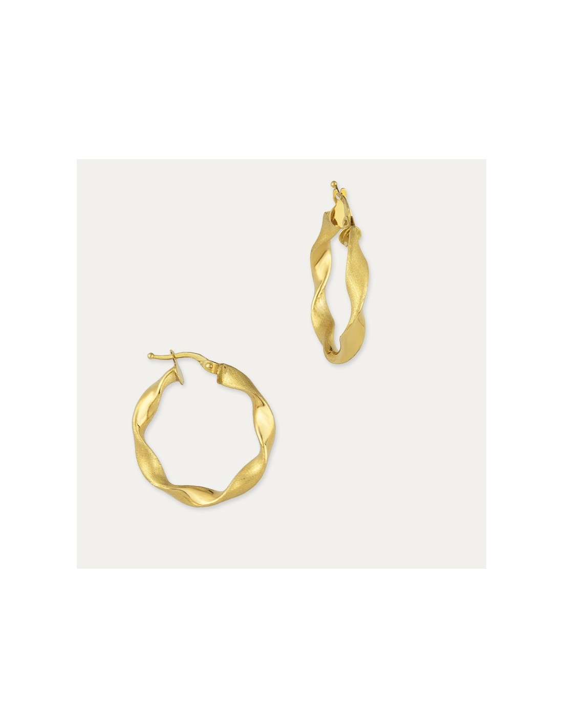 Pendientes de aro fabricados en oro 18k con forma retorcida especial. Una joya única para ti.