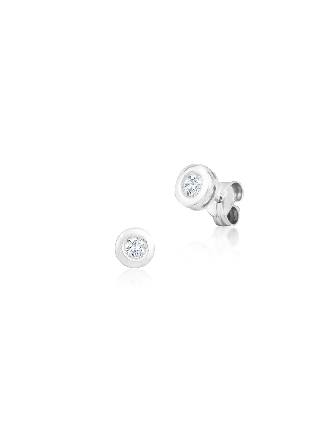 Par de pendientes en Oro de 18 kilates blanco con un diamante engastado en chatón. Con un diseño clásico pero atemporal que aporta un toque elegante y llamativo para cualquier ocasión.