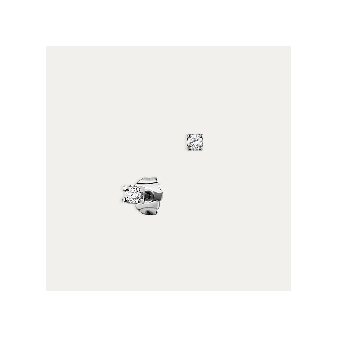 Pareja de preciosos pendientes de oro blanco 9k con cierre de presión con un pequeño diamante.