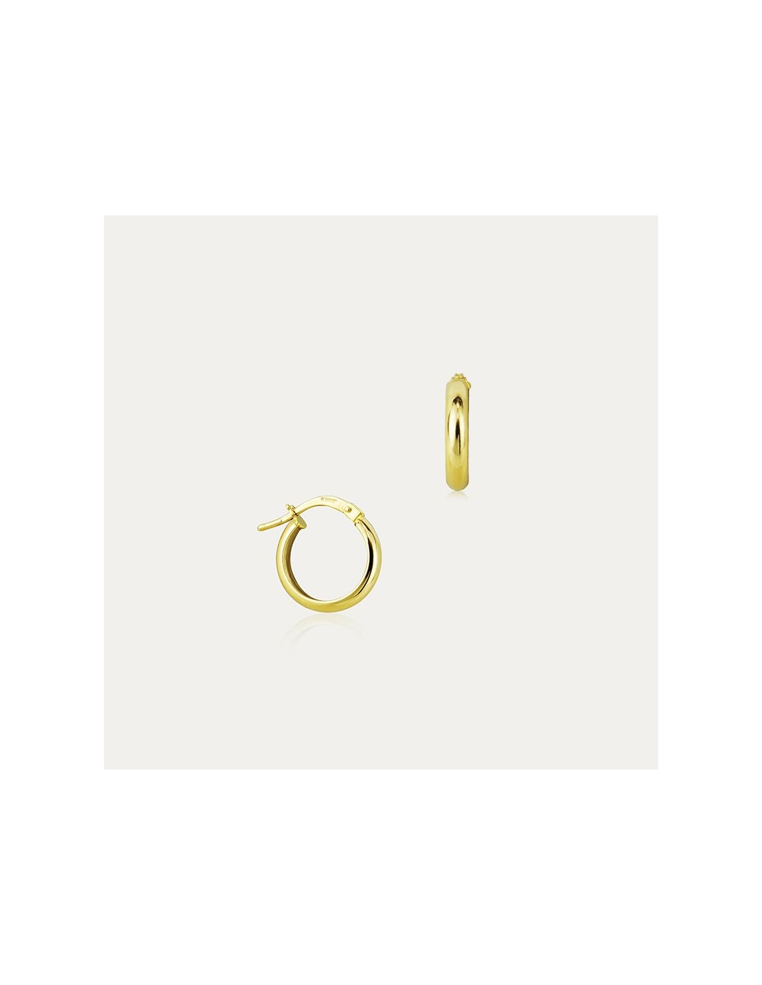 Pendientes en Oro de 9 kilates de aro estilo media caña con cierre tipo catalan, fáciles de poner y que llaman la atención por su diseño elegante.
