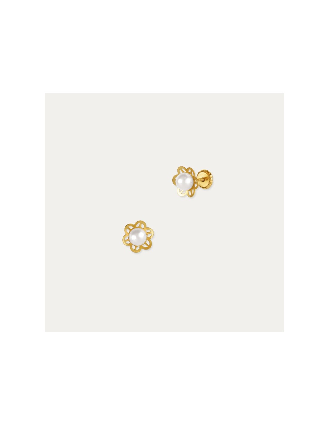 Pendientes Infantiles en Oro 9k con Flor y Perla Fairfield