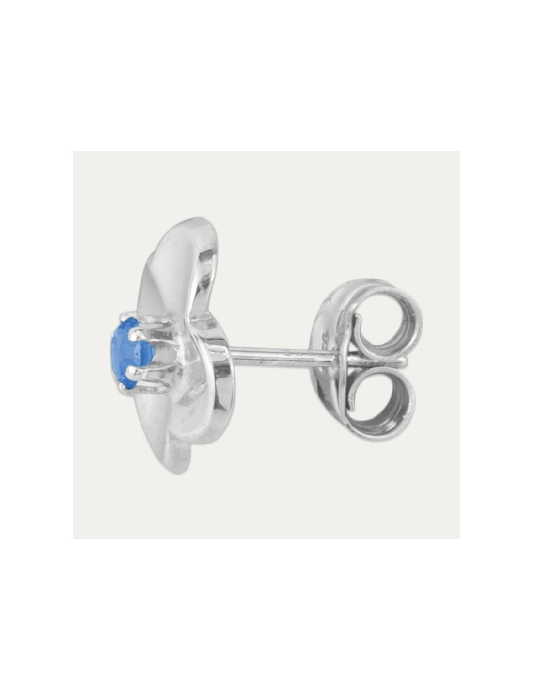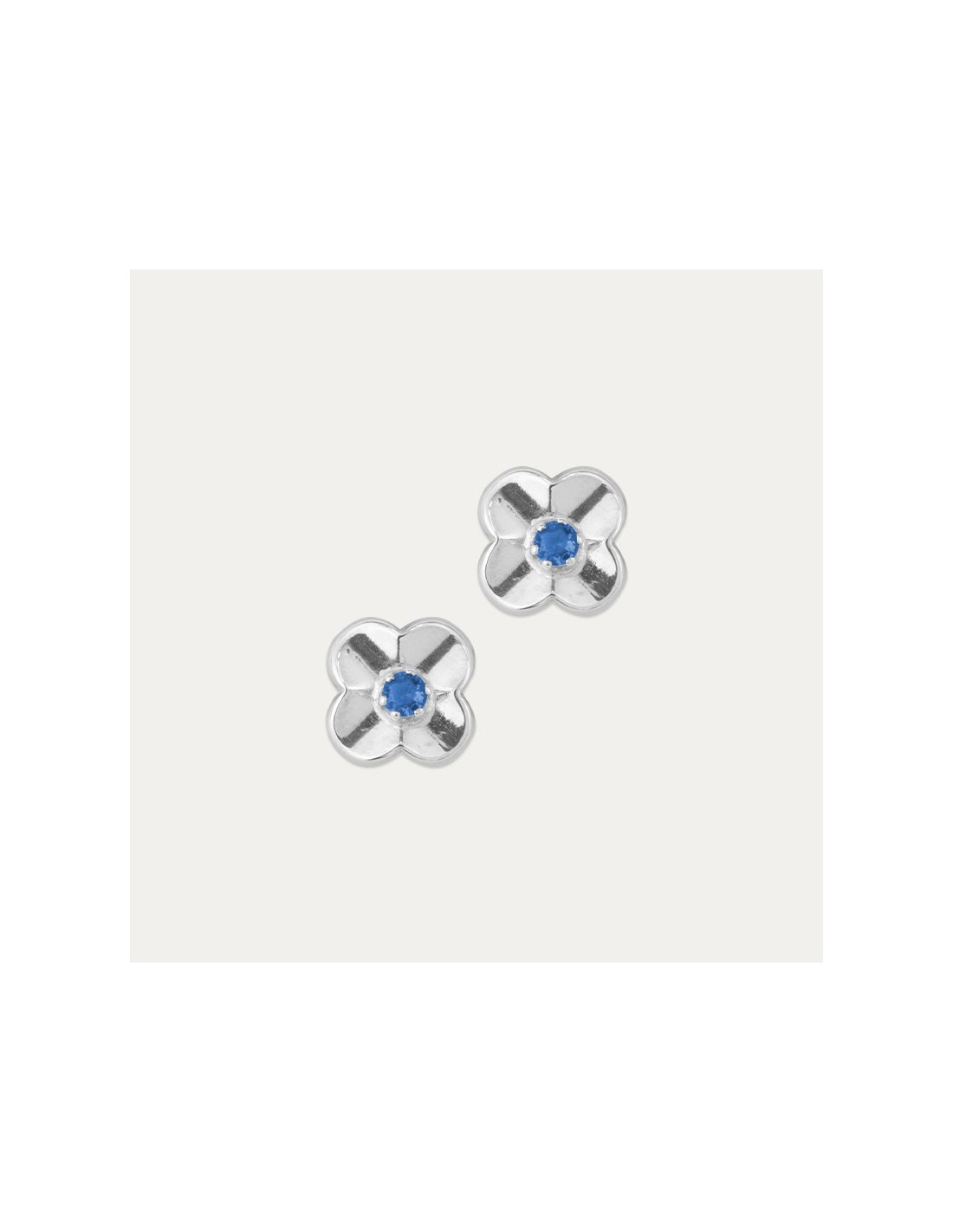 Pendientes de Plata Primera Ley en forma de Trébol y con una circonita en el centro de color azul, idóneo para regalar.