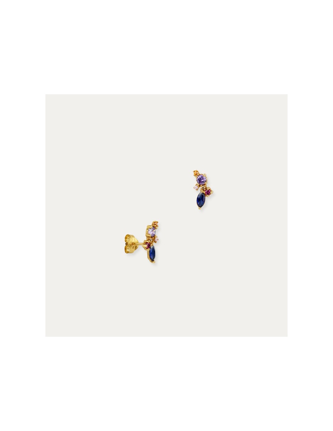 Pareja de pendientes con varias piedras de color en una disposición vertical, fabricados en Oro de 9 kilates y con un cierre de presión muy cómodo.