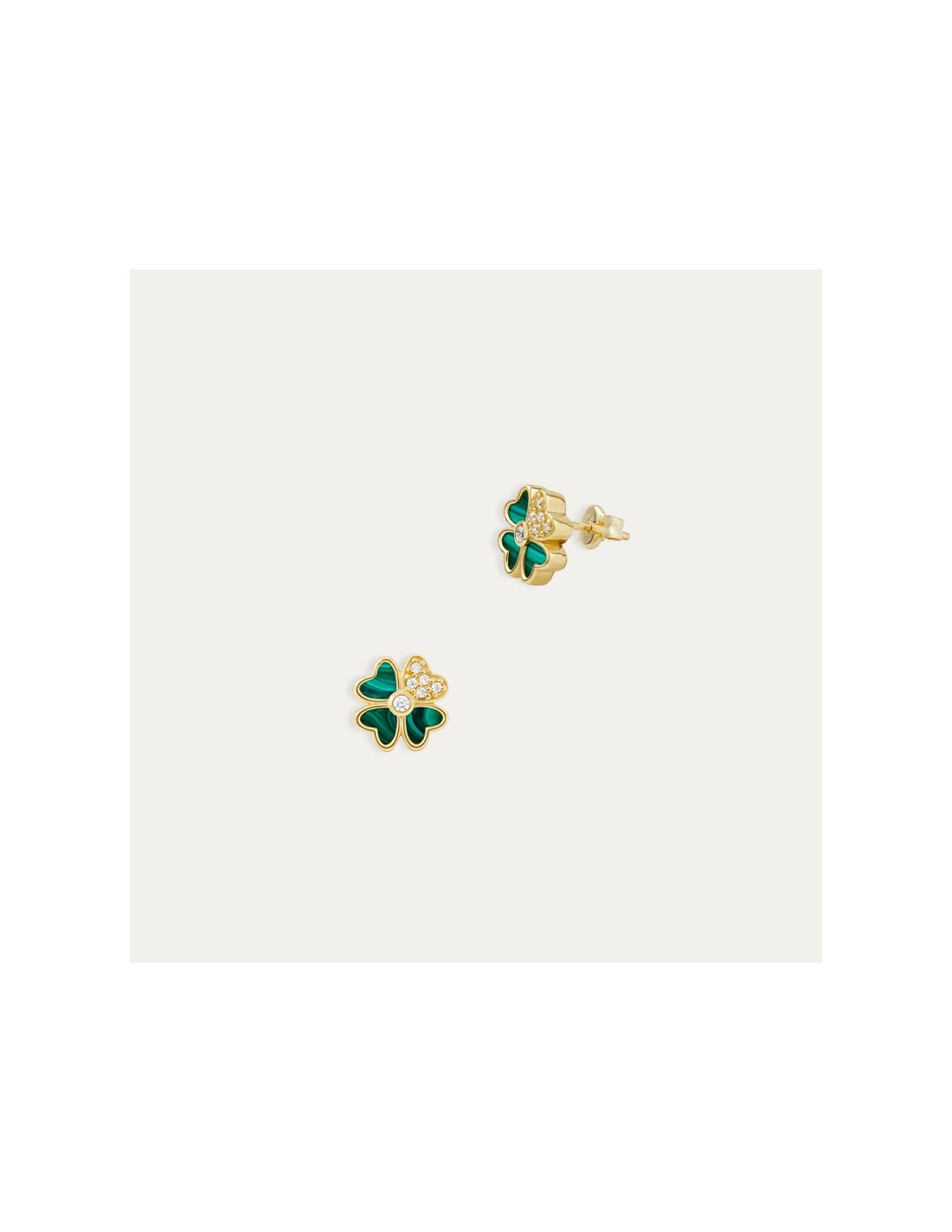 Pendientes Oro 9k Trébol Color Malaquita Chlóe