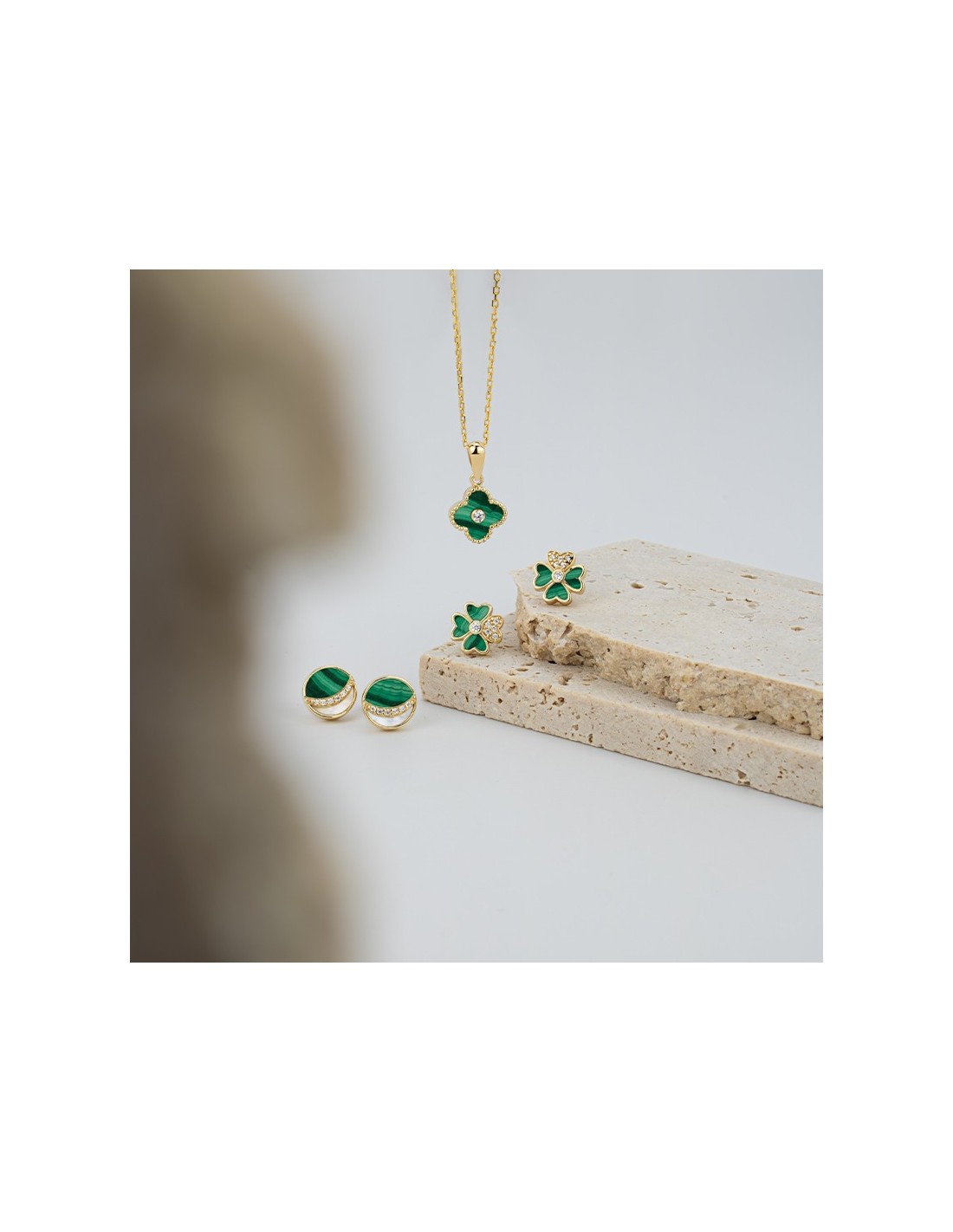 Pendientes de Oro 9k en Trébol Color Malaquita Chlóe