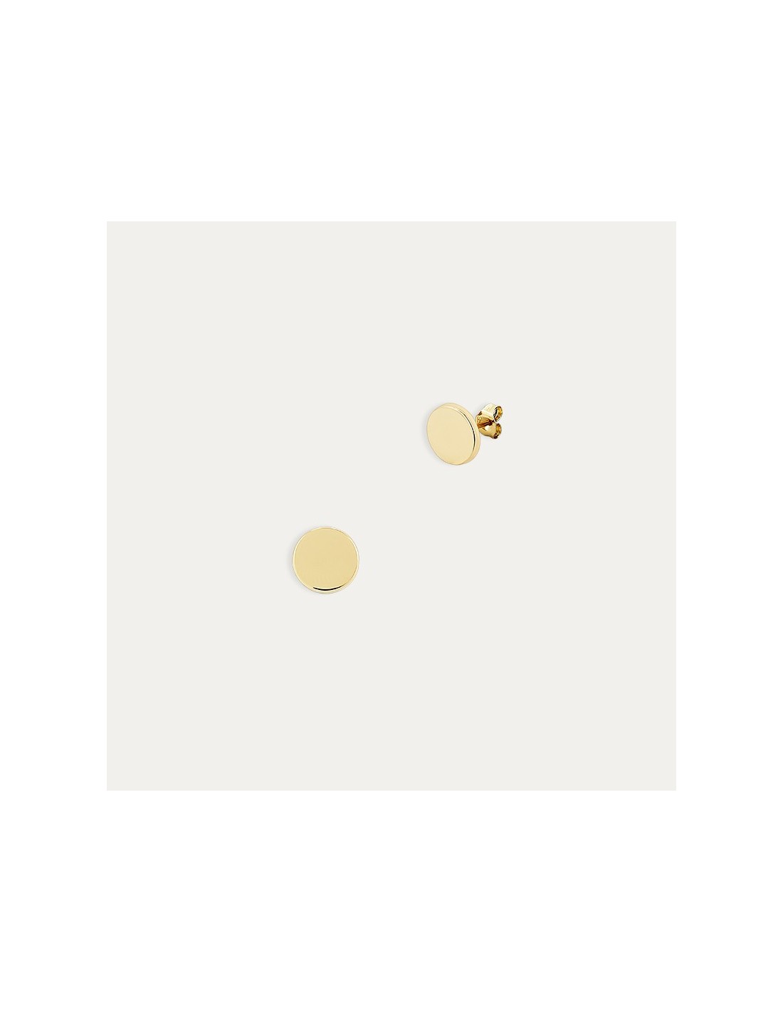 Par de pendientes fabricados en Oro de 9 kilates con forma de círculo en acabado brillante. Con cierre de presión para facilitar su uso.