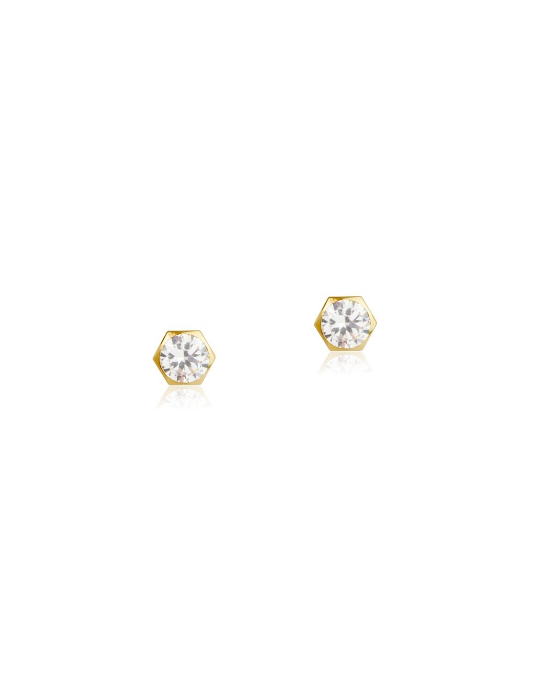 Pendientes Oro amarillo de 9 kilates de forma hexagonal con circonita y cierre de tuerca.