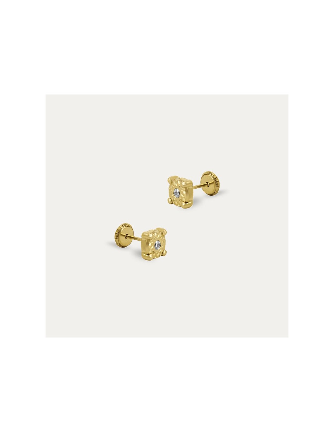 Pendientes de aro en Oro 9K. Pendientes perfectos para la primera comunión con una pequeña circonita central en la joya y cierre de rosca.