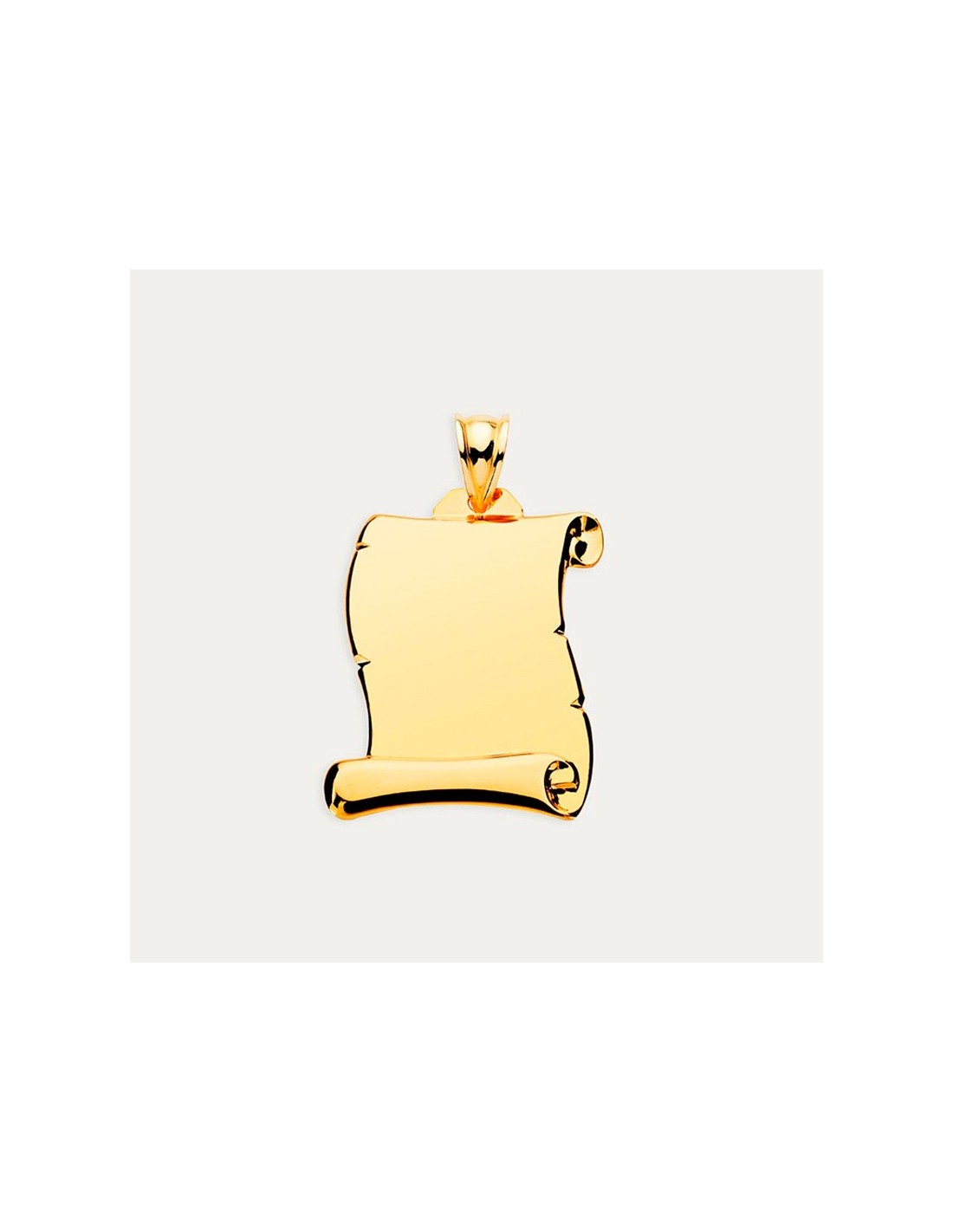 Colgante en forma de pergamino personalizable fabricado en Oro de 18 kilates. Una joya perfecta para personalizar con un texto o una imagen y llevarla contigo siempre.