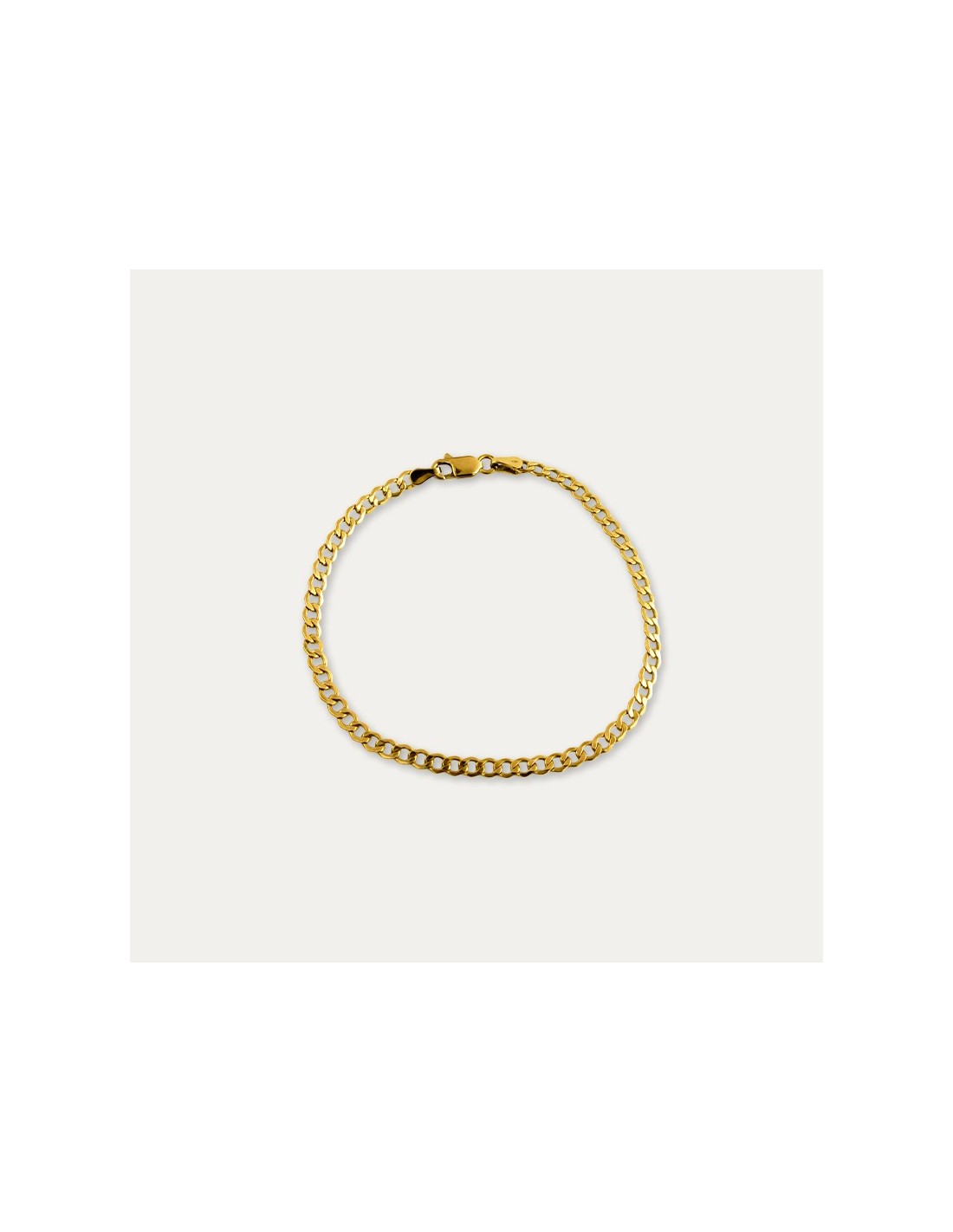 Pulsera de Oro 9 kilates con eslabón tipo barbado. Una pulsera con acabado clásico y que aporta un toque elegante si la acompañamos con otras joyas o incluso por si sola.