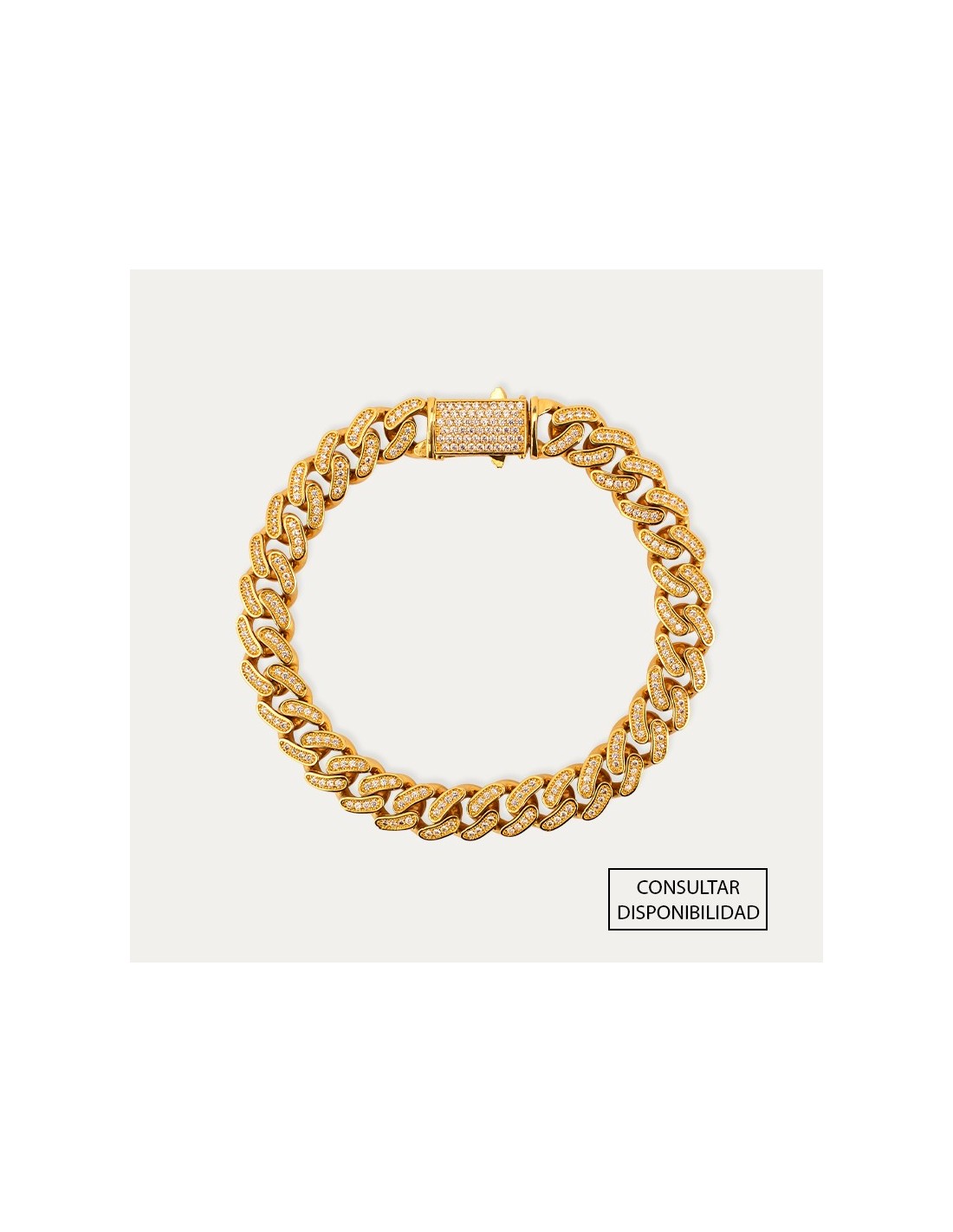 Pulsera fabricada en oro de 18 quilates con pequeñas circonitas con cierre tipo cajón.