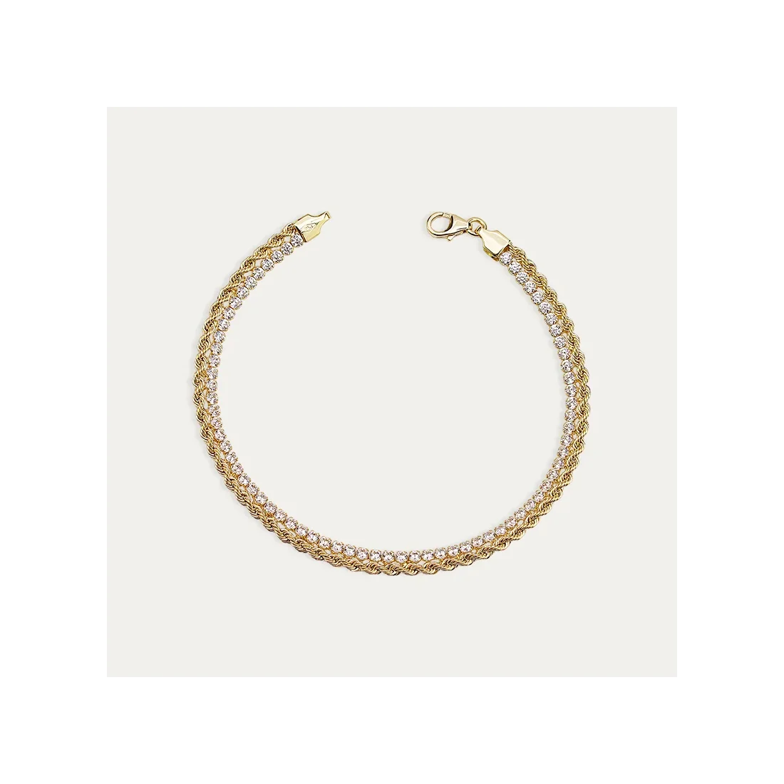 Pulsera en Oro de 18k Cordón y Circonitas Combi