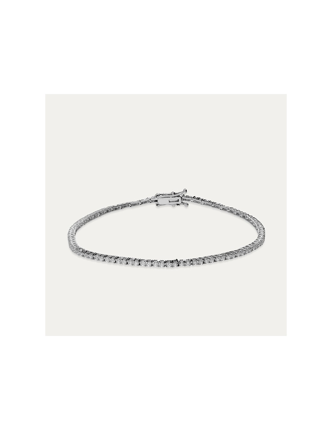 Pulsera en Oro blanco con eslabón tipo Palmier y diamantes creados. Perfecta para lucir en esa velada especial.