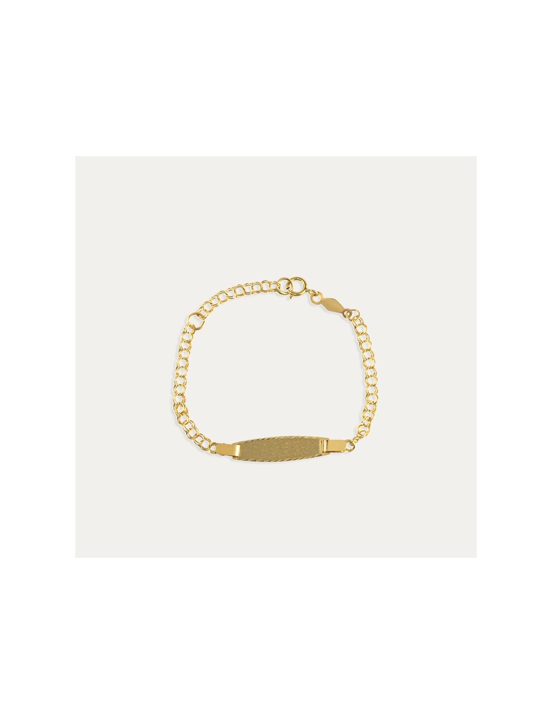 Pulsera de Oro infantil con chapa personalizable fabricada en 18 quilates. Un regalo especial para toda la vida.
