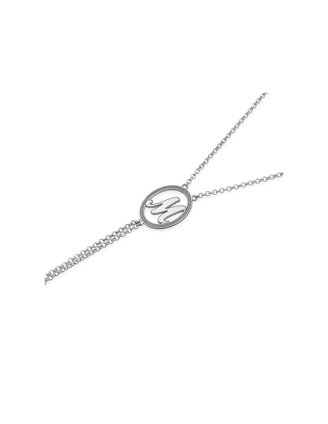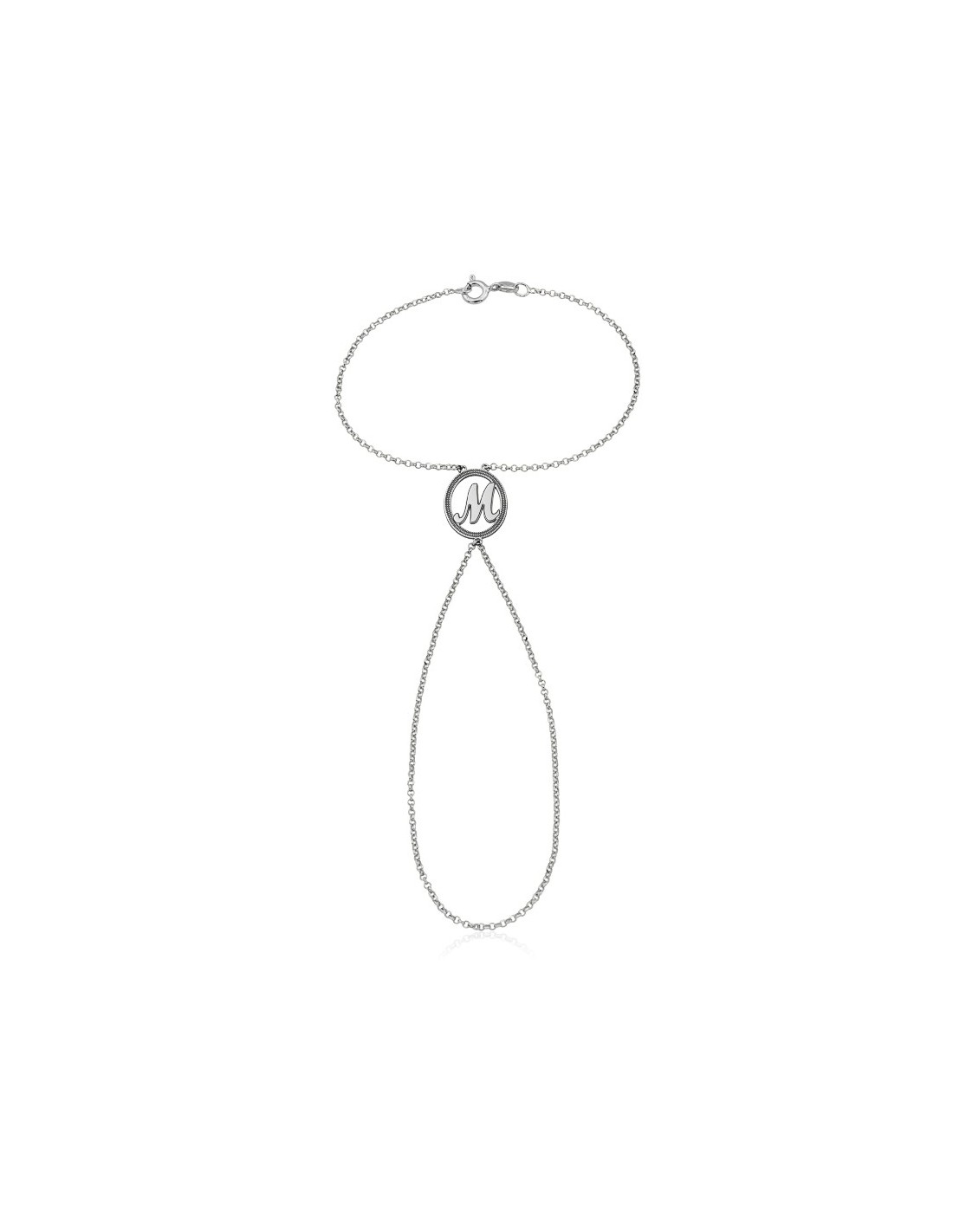 Pulsera de dedo en Plata Primera Ley con motivo circular de inicial personalizada.