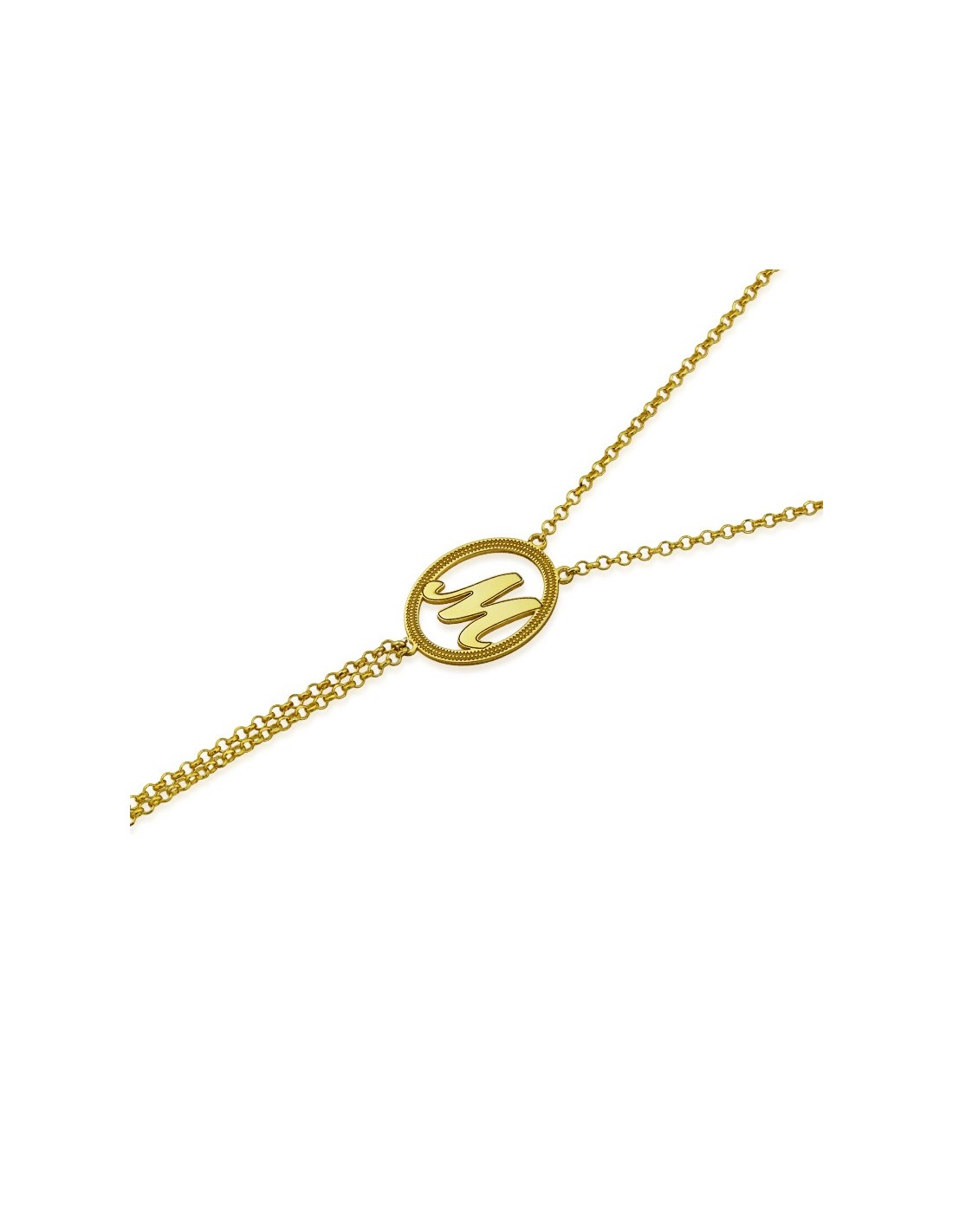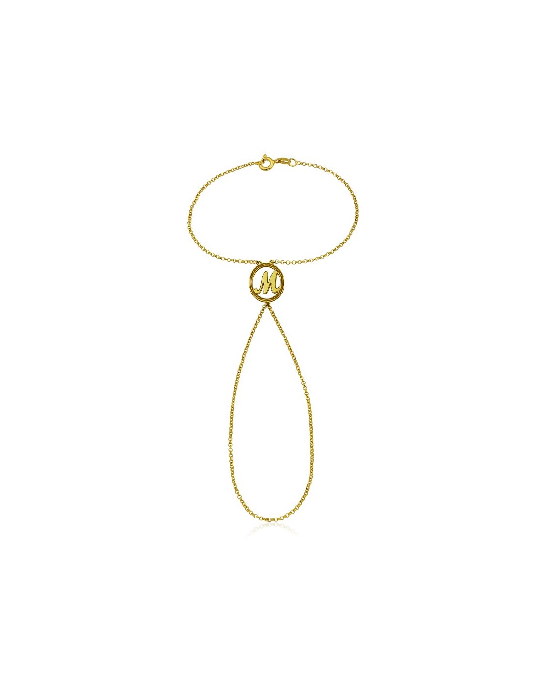 Pulsera de dedo en Plata 925 mlm dorada con motivo circular de inicial personalizada.