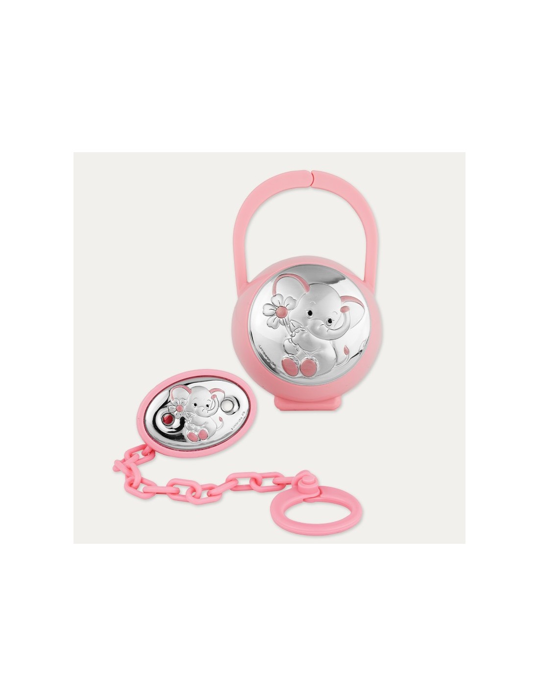 Chupetero Más Portachupetes de Plata Bilaminada con Elefante Rosa Nice