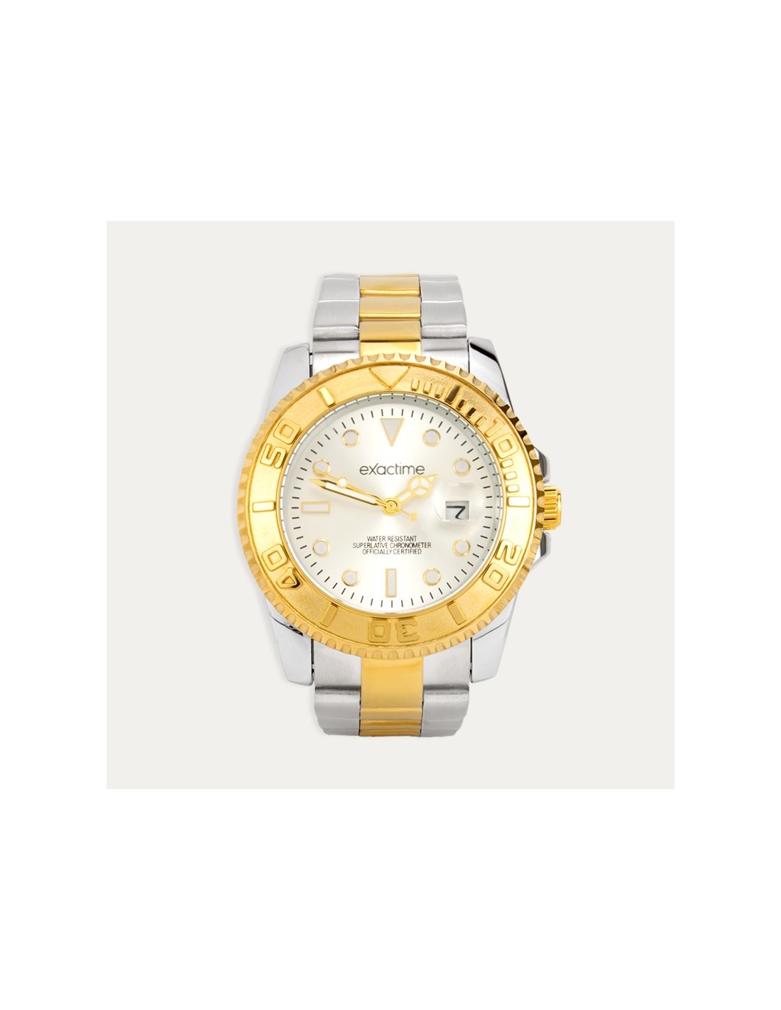 Reloj de hombre en acero bicolor con esfera en blanco, bisel dorado móvil y correa tipo armys bicolor.