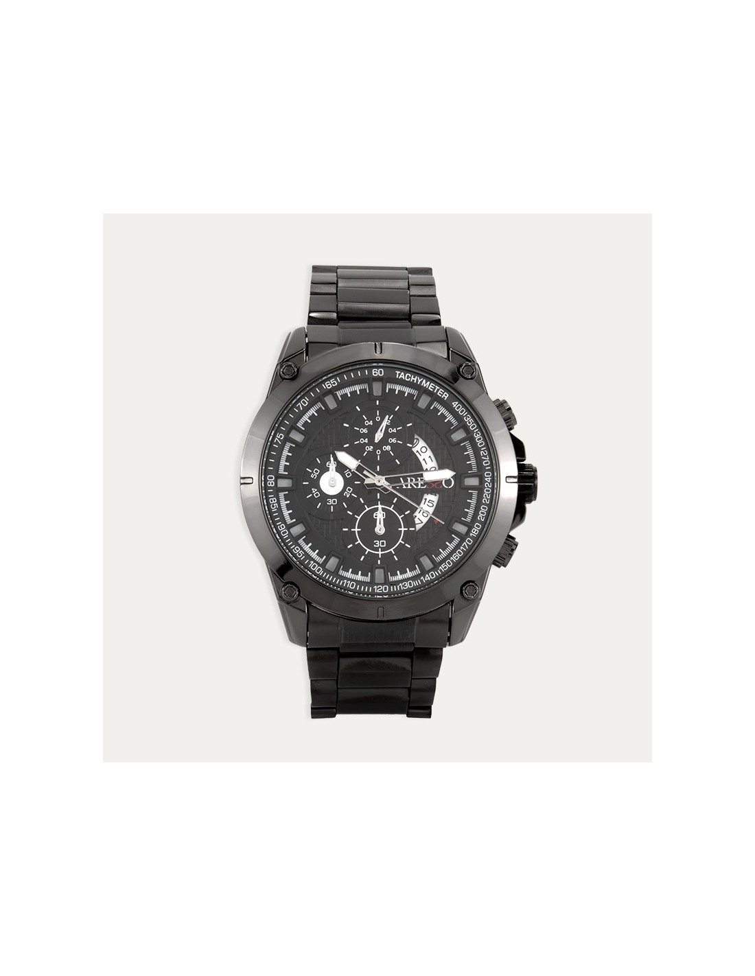 Reloj para caballero fabricado en acero con acabado en negro y esfera también en negro, con detalles en blanco. Mide tus objetivos gracias a su taquímetro incorporado.