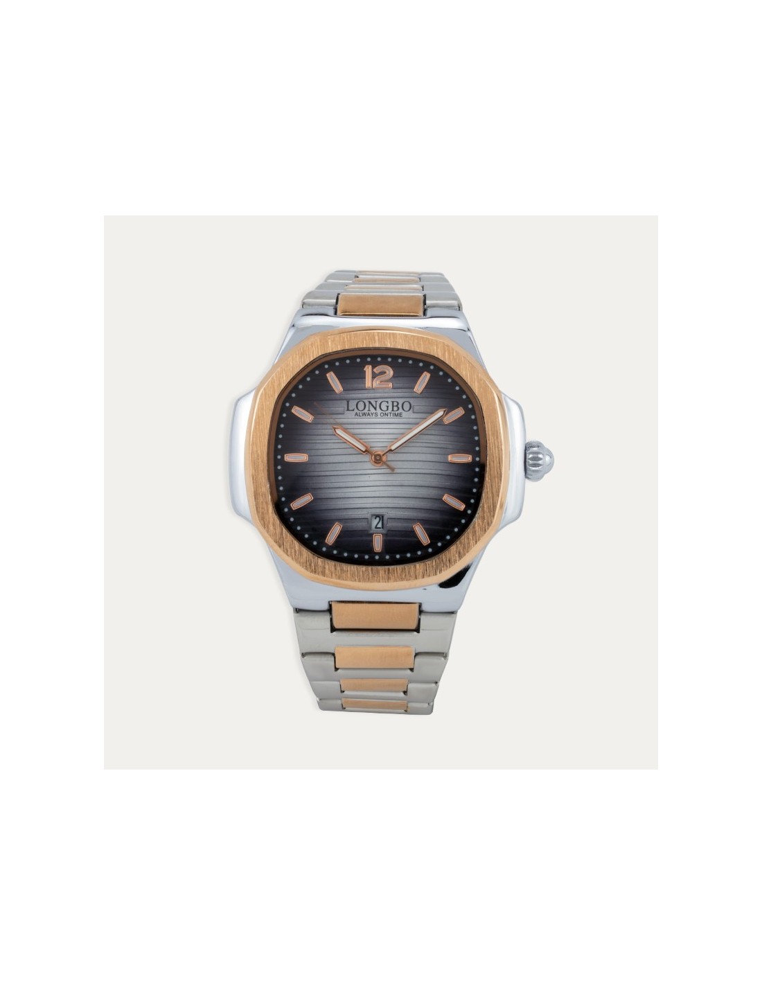 Espectacular reloj de acero bicolor para hombre con esfera en degradado de blanco a negro.