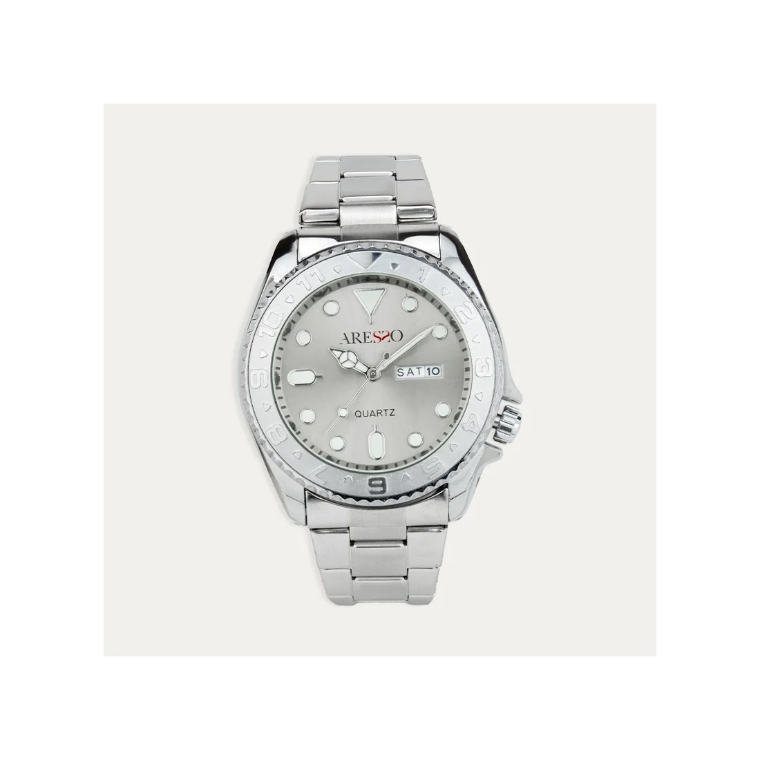 Reloj para hombre fabricado en acero con esfera en color blanco. Calendario incorporado y bisel giratorio.