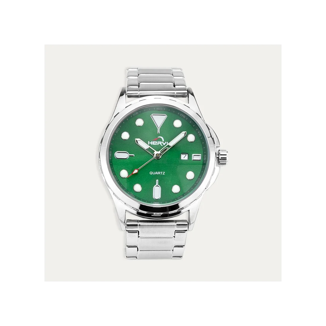 Reloj de acero con esfera en color verde y calendario incluido. Un reloj fabricado para ti, para tu día a día.