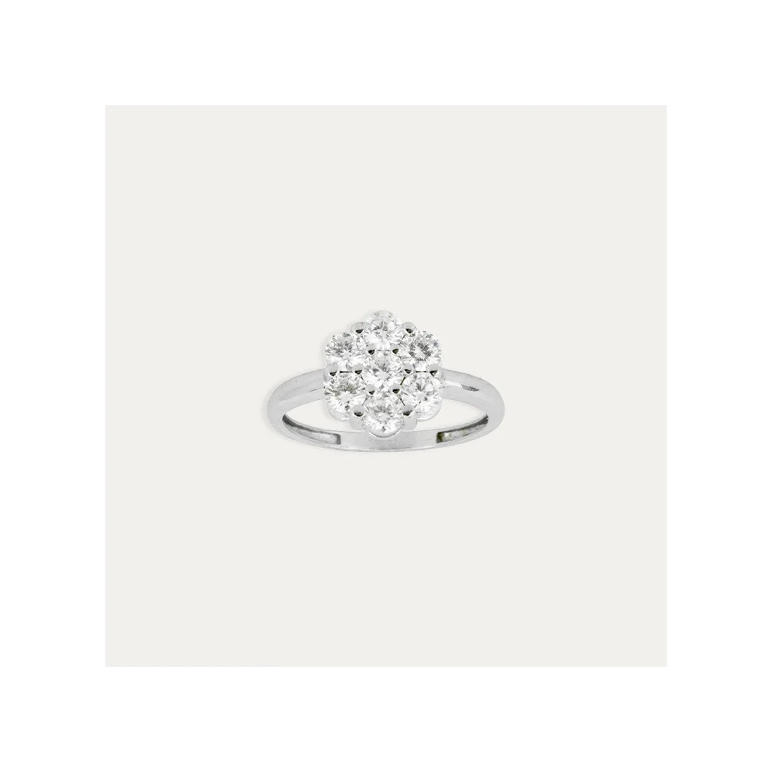 Sortija estilo rosetón de brillantes en oro blanco de 18 kilates, una joya clásica, atemporal y de las más elegantes, podrás combinarla con todos tus looks y deslumbrar en cualquier evento.