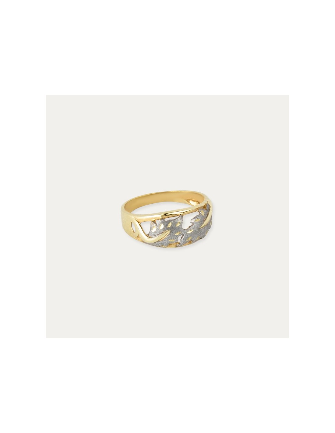 Anillo de oro 9 kilates bicolor con motivo de hojas mate