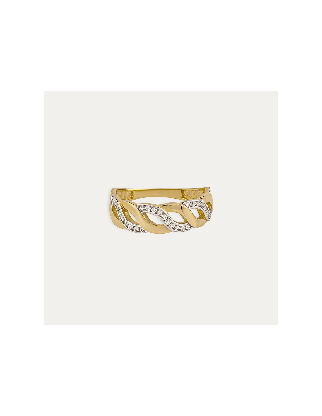 Sortija de oro bicolor 18 quilates con pequeñas circonitas formando carriles. ¡Será tu favorita!