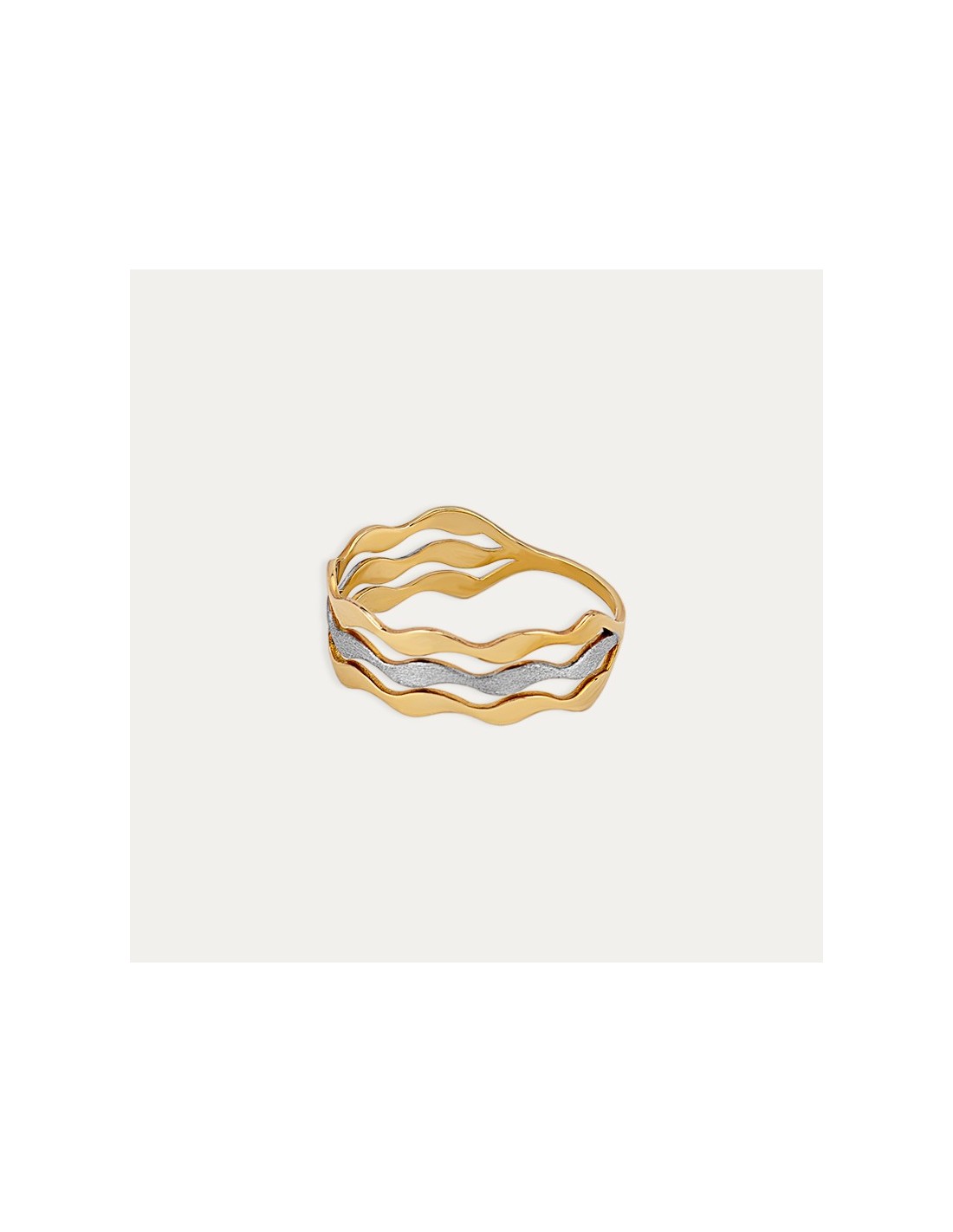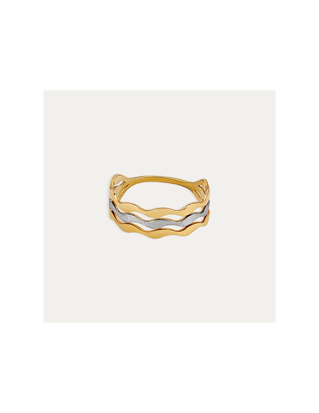Anillo de oro amarillo y oro blanco de 9 quilates, con diseño de pequeñas olas.
